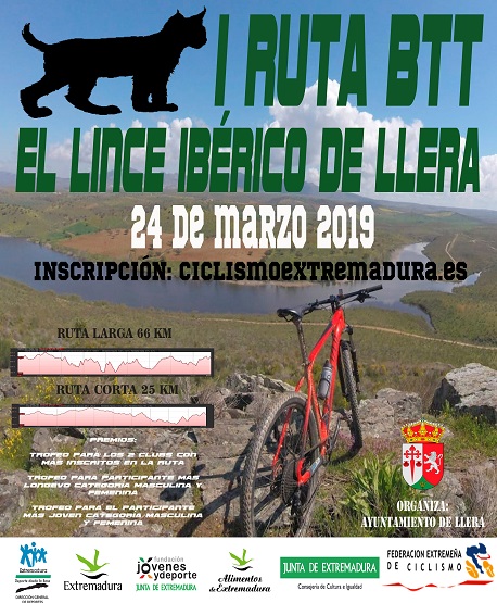 Seguimos sumando DEPORTE a nuestro pueblo. Después de un trabajo intenso os presentamos la I RUTA BTT "EL LINCE IBÉRICO DE LLERA".